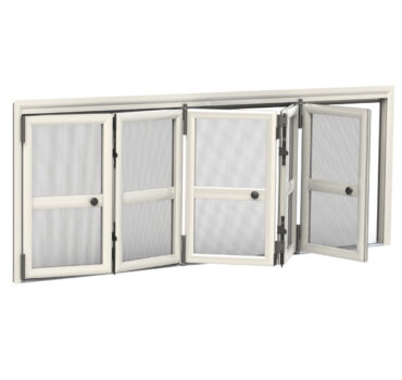 - Rete: in alluminio brunita di serie (argento opzionale), ma può essere richiesta anche in fibra di vetro, acciaio inox, Tuffscreeen™, PetScreen